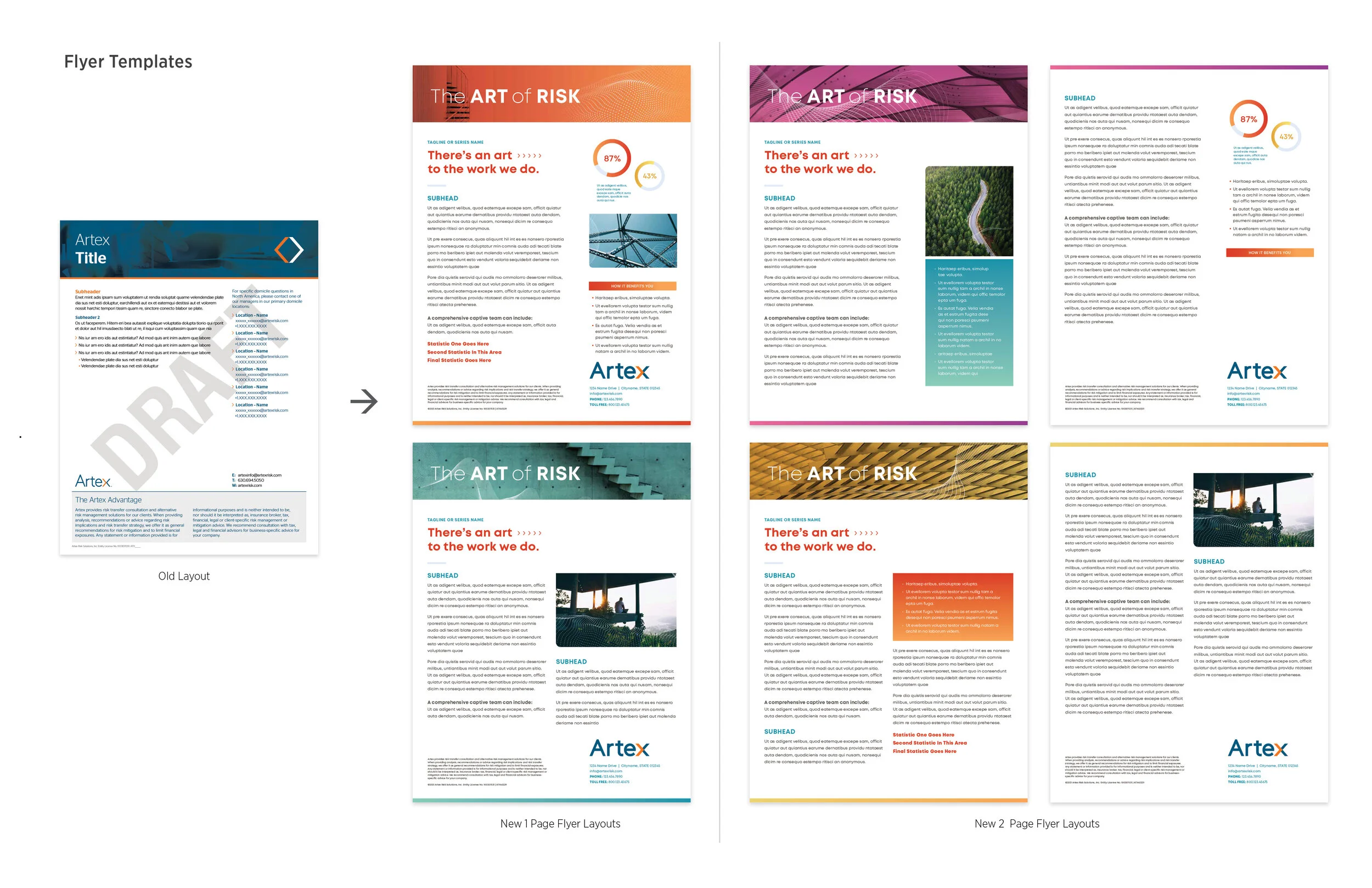 In 2021 Artex went though a rebrand in order to make themselves stand out more amongst their competitors. With that, I had the opportunity to apply their new brand to various templates that are being used across the entire department. Directly below you will see the the 1 and 2 page flyers and brochure templates, followed by the social templates, an events toolkit, and tradeshow booth.